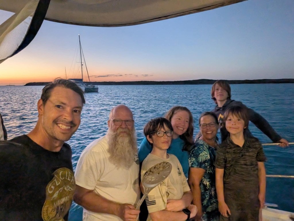 The nice thing about cruising however is that you tend to catch back up with old friends in new, far flung anchorages. We left our New Zealand friends on Kaia back in St Augustine when they were headed to visit with family and we wanted to get down to West Palm Beach. The two weeks we spent in Staniel Cay waiting on a new propeller for our dinghy provided just the right time for them to catch up to us in the Exumas! We received our package (finally) they day before they arrived and sailed back up to Pipe Cay to meet with them. We spent the day snorkeling, paddle boarding, and beaching, rounded out with Moana 2 for the kids and sundowners for the adults. We were so happy to see them again! Even more fun, they’re on basically the exact same boat as us so we can swap stories (and parts) as needed.