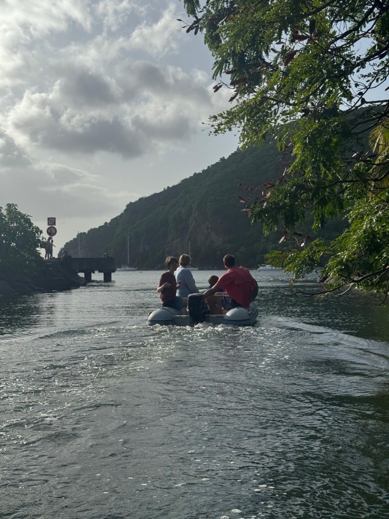 Once we arrived in Guadeloupe we parked ourselves in a little bay outside of the town of Deshaies. The anchoring was quite difficult here and it took us several tries to find a spot, but once we got settled we could’ve stayed forever. Deshaies is an adorable little town with an amazing French bakery right off the dinghy dock and a great beach where we spent many evenings hanging out with our friends while the kids chased crabs. There is a fun walk up the river right in town where we spent a wonderful day swimming and floating in tubes.