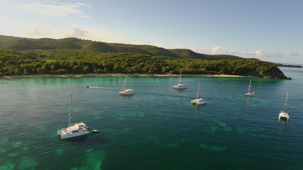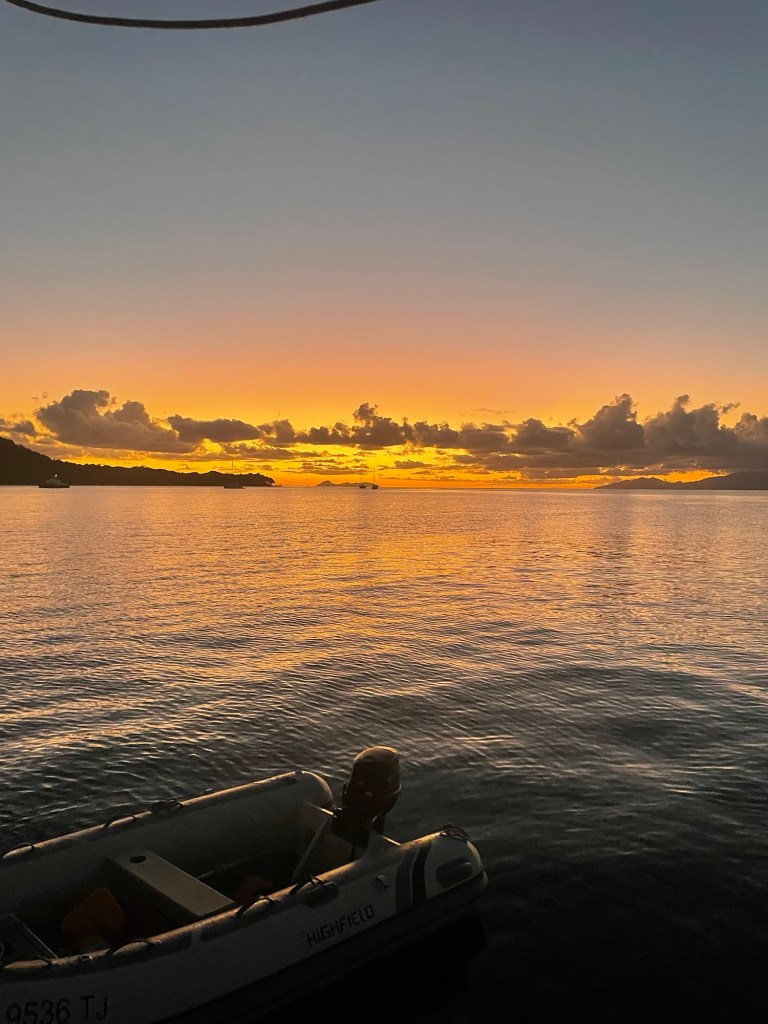 The passage south from St Martin was one of our easier passages that season in terms of wind angle, and we were finally able to get in some significant sailing! Unfortunately it was very squally and a particularly bad one hit unexpectedly in the middle of the night. Neal was on watch while I was asleep down below, and I woke to the sound of one of the jib sheet shackles pounding back and forth on the deck. I’ve experienced this sound before and knew immediately what causes it…lack of tension due to the need to furl the sail in high winds and not having enough hands to both furl and keep enough tension on the sheet. I rushed upstairs to pouring rain, big waves, 30kt winds, and lighting strikes in the distance. Often squalls come with calmer seas so the waves were a surprise, and a bit scary due to their angle on our beam. Our friends on Bobin were a few miles ahead of us and right in the middle of the lightning strikes!