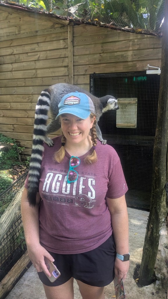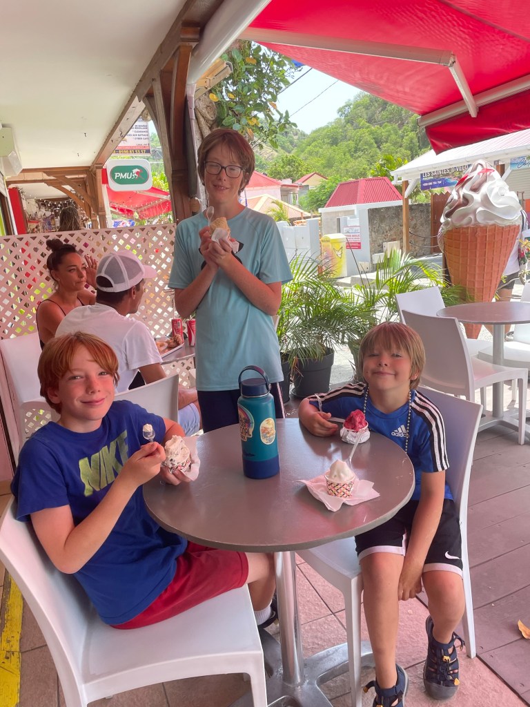We rented a car for a day and went to the zoo, which has a neat canopy tour with rope bridges, a giant anteater, and some very friendly lemurs. We also explored a nearby waterfall and spent another day soaking in the stream. Deshaies has a fun botanical garden nearby with a free shuttle that we also had a great time at! The boys particularly enjoyed feeding the animals.